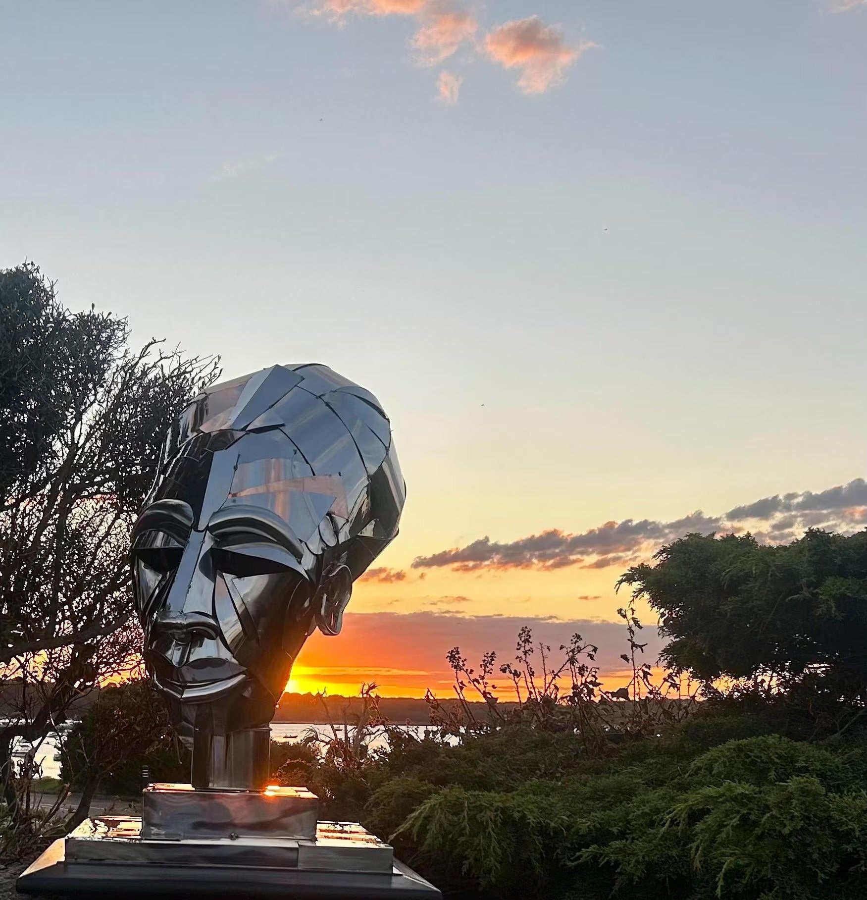 Made from highly polished 304 stainless steel with subtle copper highlights, the sculpture captures and reflects light beautifully, ensuring it stands out in any setting. Its robust ebony and stainless steel base not only grounds the piece but also allows the head to rotate smoothly, so you can adjust it to suit your space.