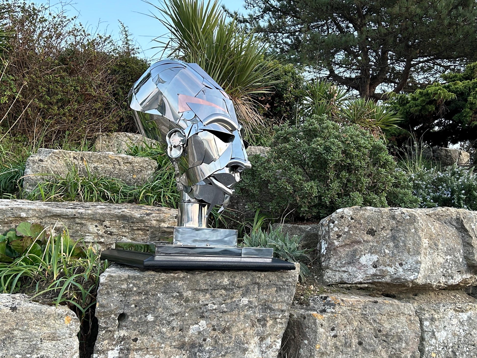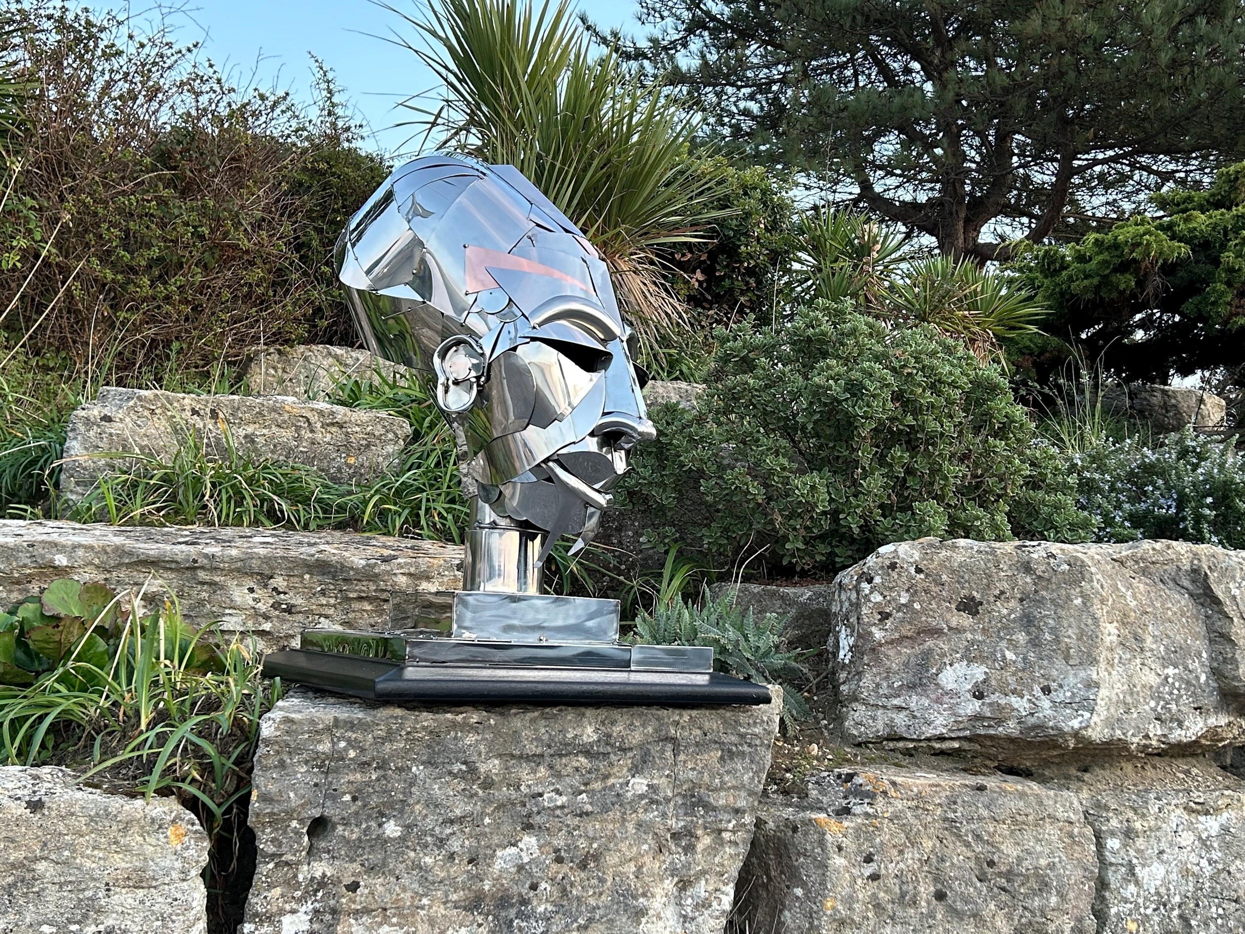 Handcrafted Stainless Steel & Copper Accent Head Sculpture – One of a Kind